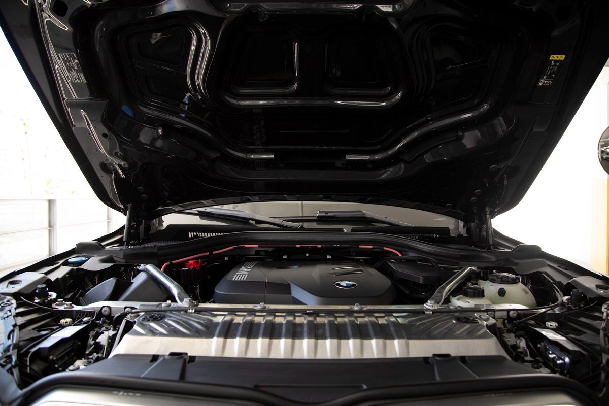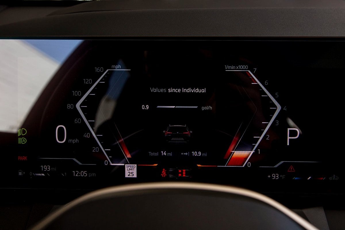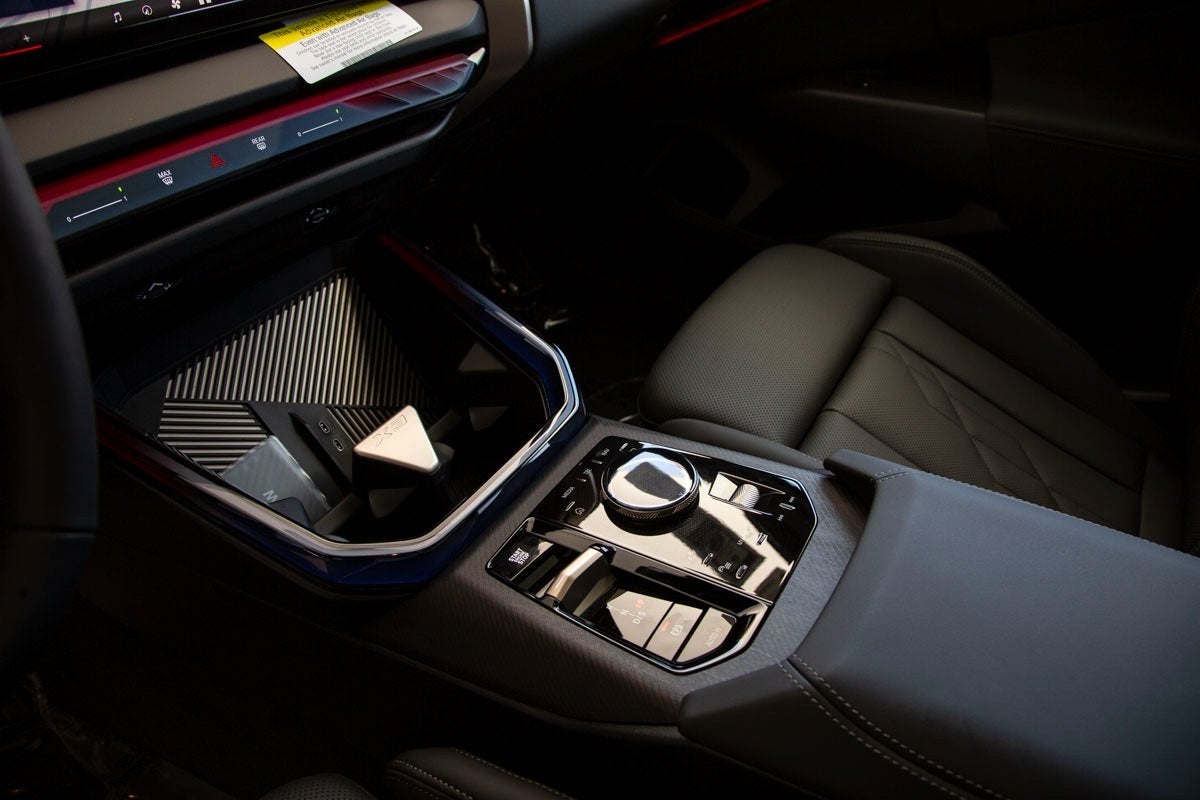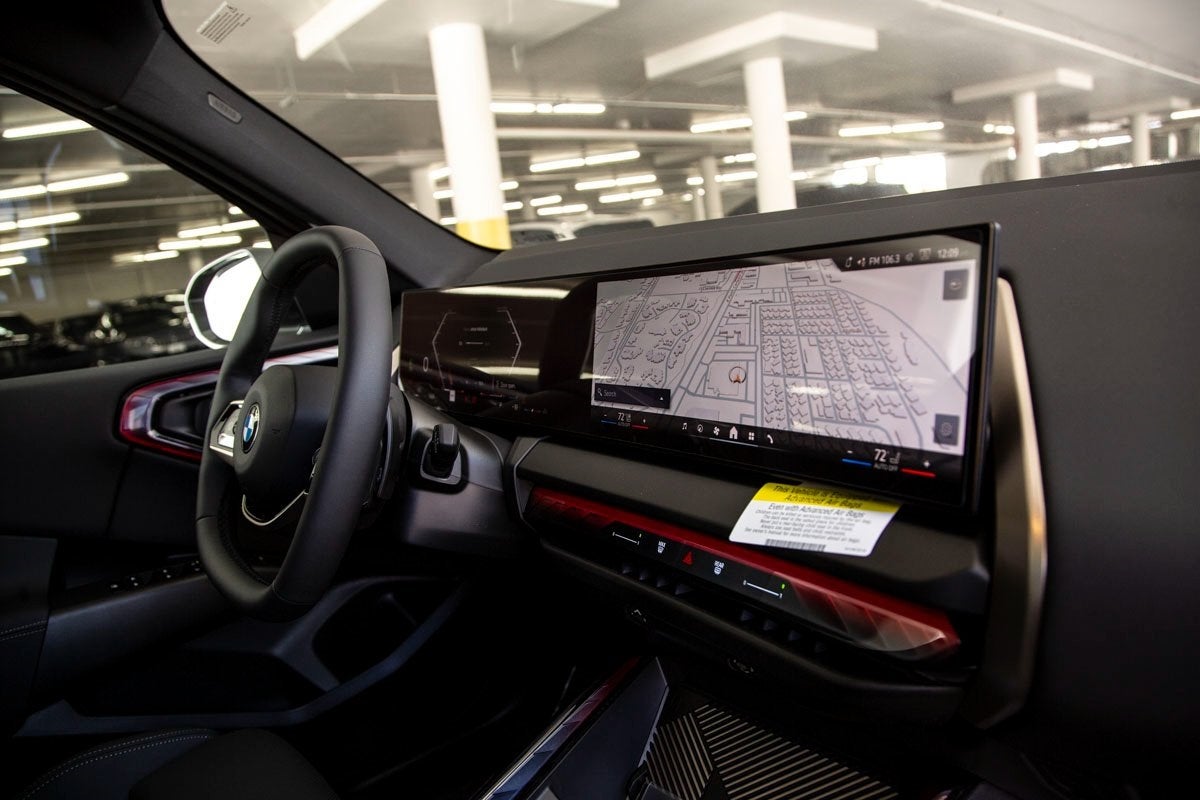 The interior exudes contemporary luxury with Black Veganza Perforated & Quilted Upholstery and thoughtful appointments such as Heated Front Seats, Front Ventilated Seats, and a Heated Steering Wheel. High-end technology abounds with the BMW Curved Display with Head-Up Display (HUD), Wireless Device Charging, and an immersive Hi-Fi Sound System with 12 Speakers.