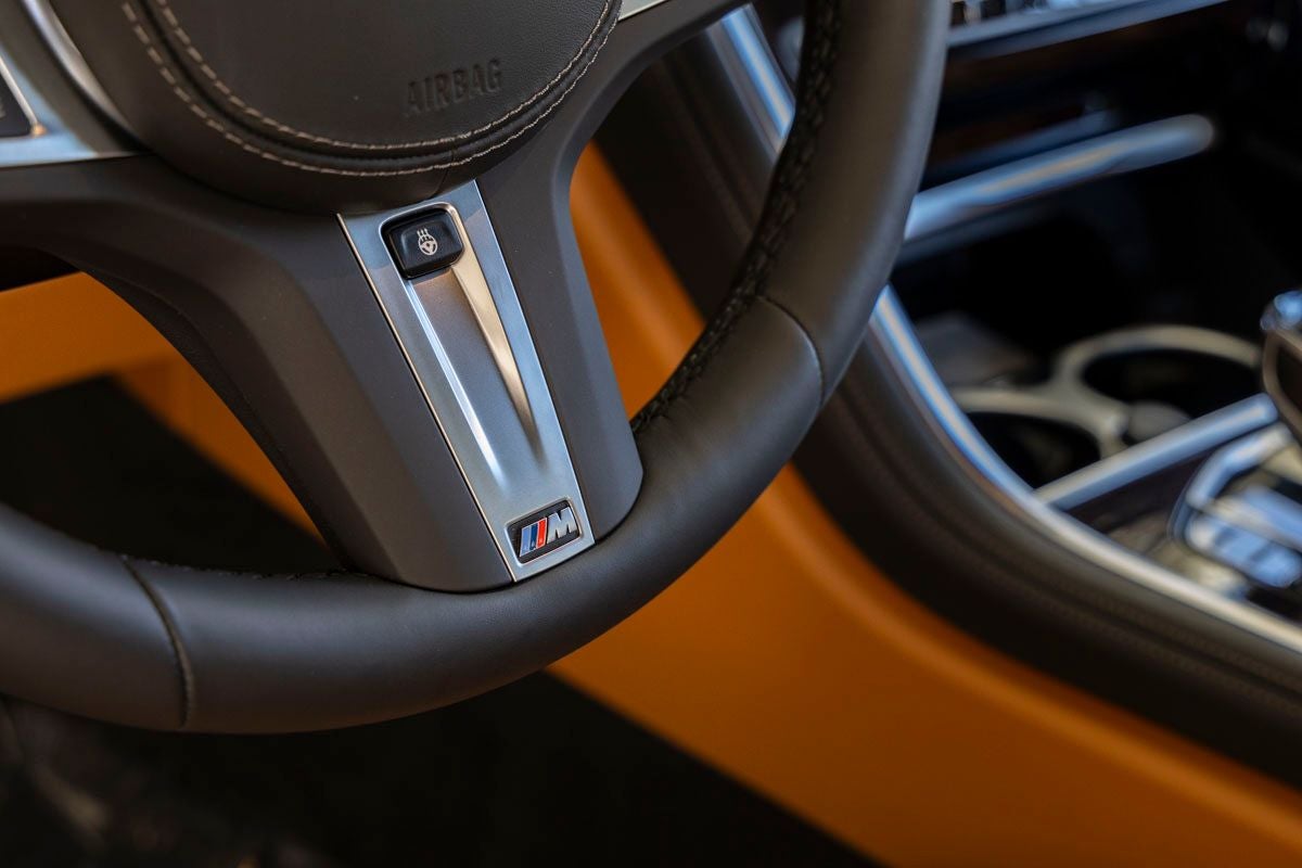 Step inside and the Cognac interior welcomes you with a warm, luxurious ambiance that perfectly complements the vehicles grand touring character. Fineline Copper Wood Trim and Glass Controls create a refined and contemporary environment, while Multi-Functional Seats with heating and ventilation ensure supreme comfort. The Live Cockpit Pro with Navigation, Heads-Up Display, and premium materials throughout the cabin reflect BMWs commitment to cutting-edge technology and craftsmanship.