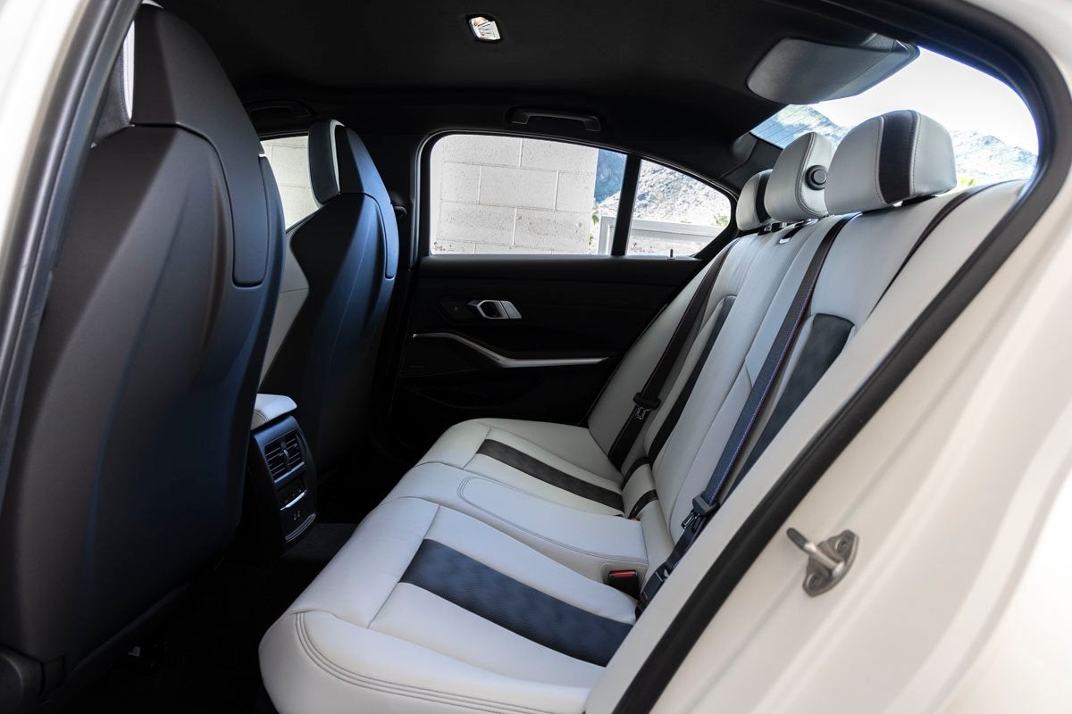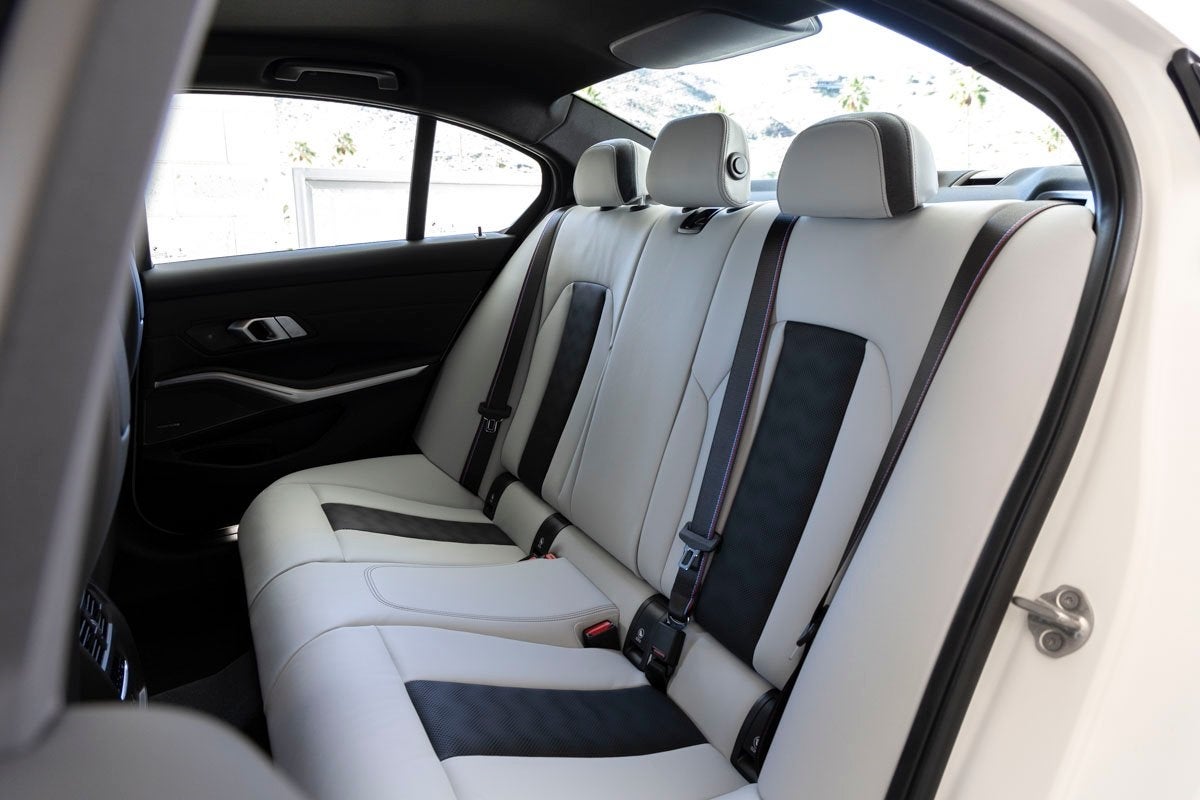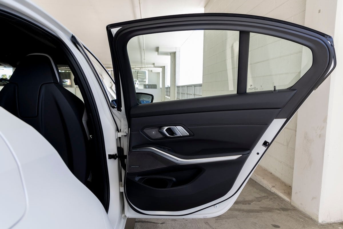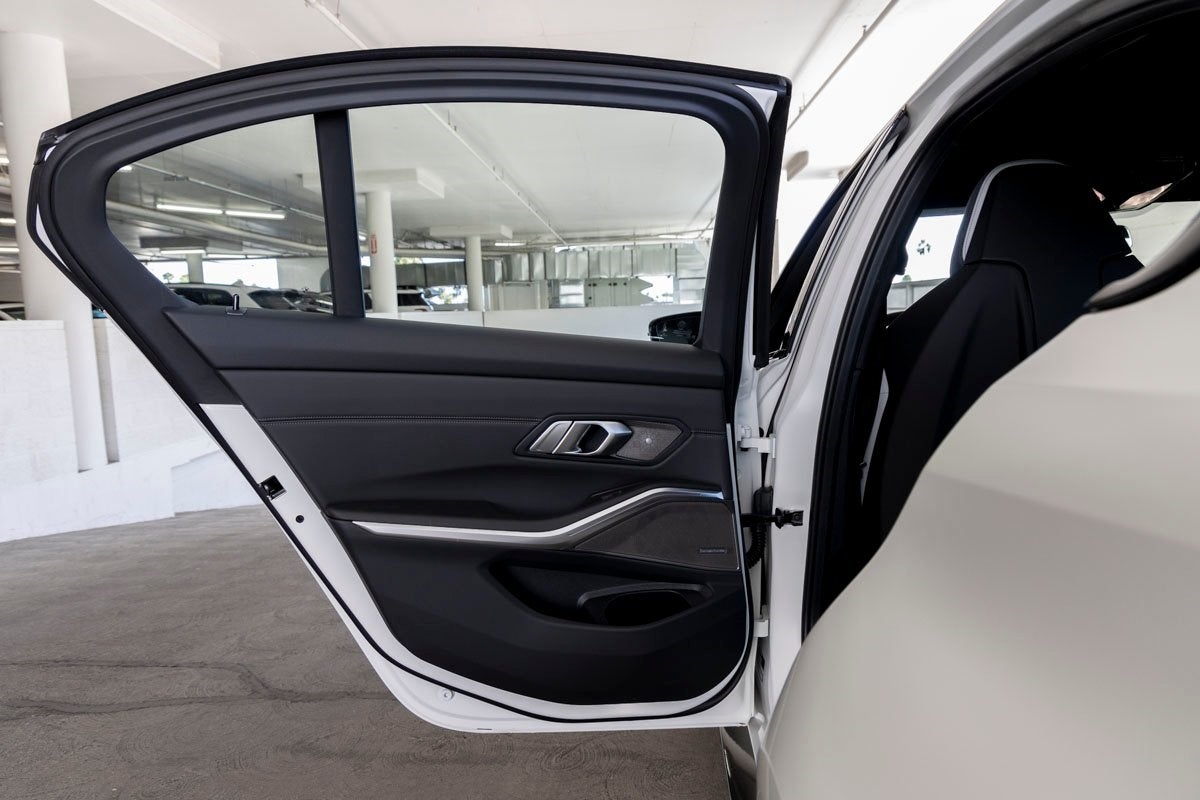 Dynamic performance is supported by adaptive suspension, fourwheel independent suspension, speedsensing steering, traction control, and BMWs M Compound Brakes with red calipers. Safety systems include ABS, dual front impact airbags, dual front side impact airbags, knee airbags, overhead airbags, emergency communication system BMW Assist eCall, and electronic stability control. Exterior features like Full LED Headlights with cornering lights, heated autodimming door mirrors, M Shadowline Lights, spoiler, and power door mirrors underscore both style and function.