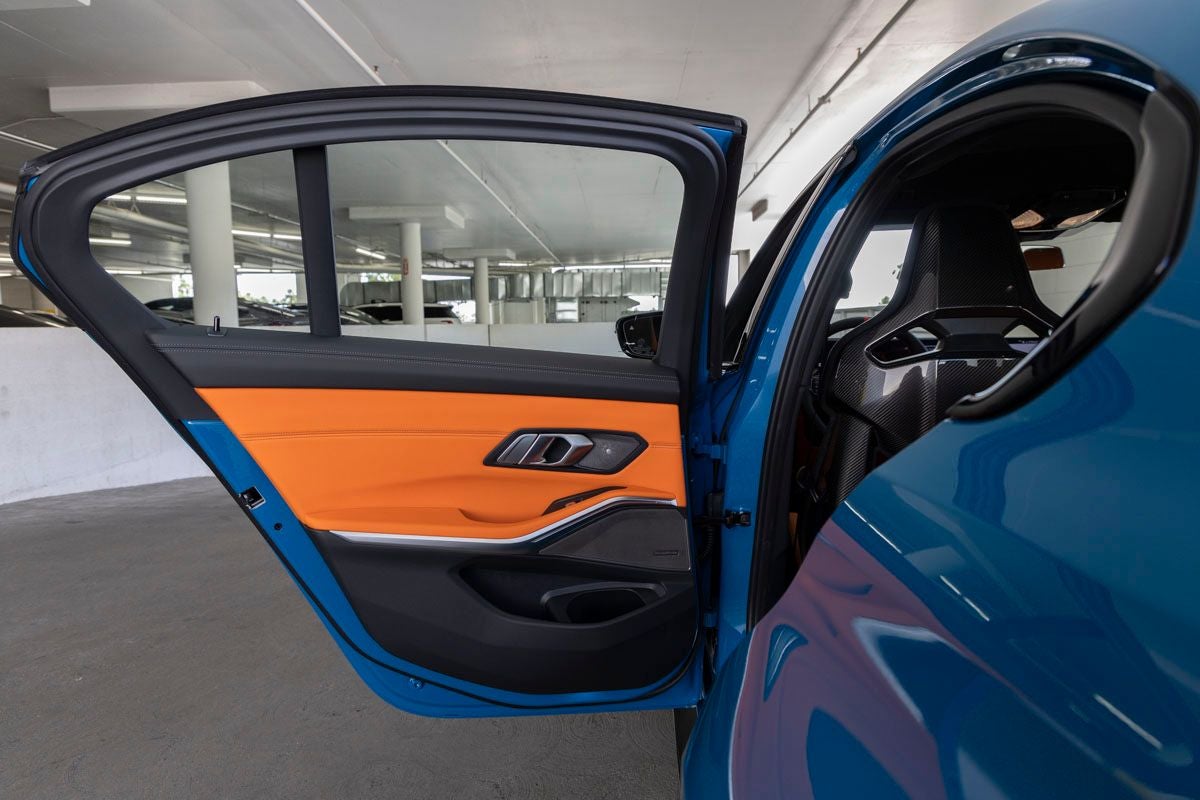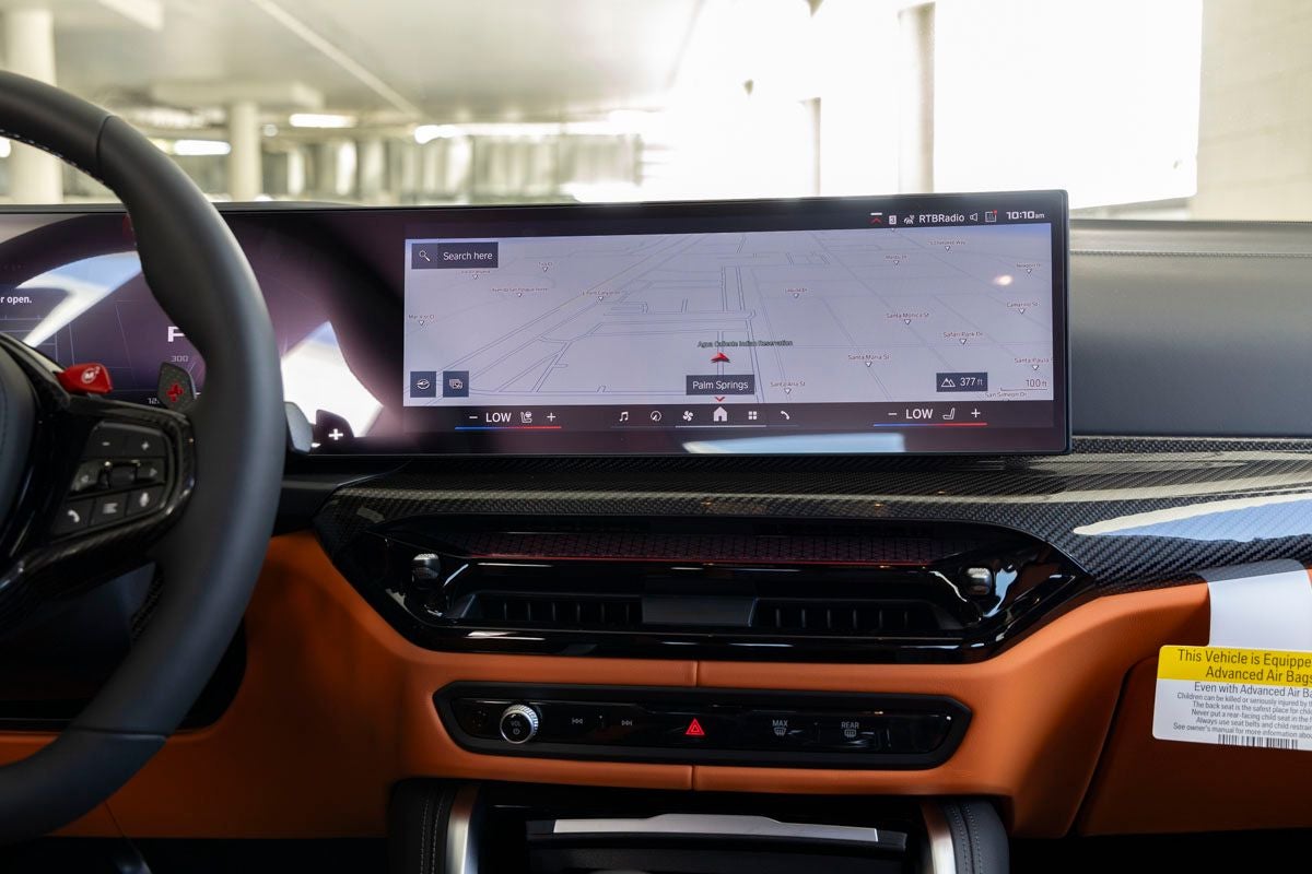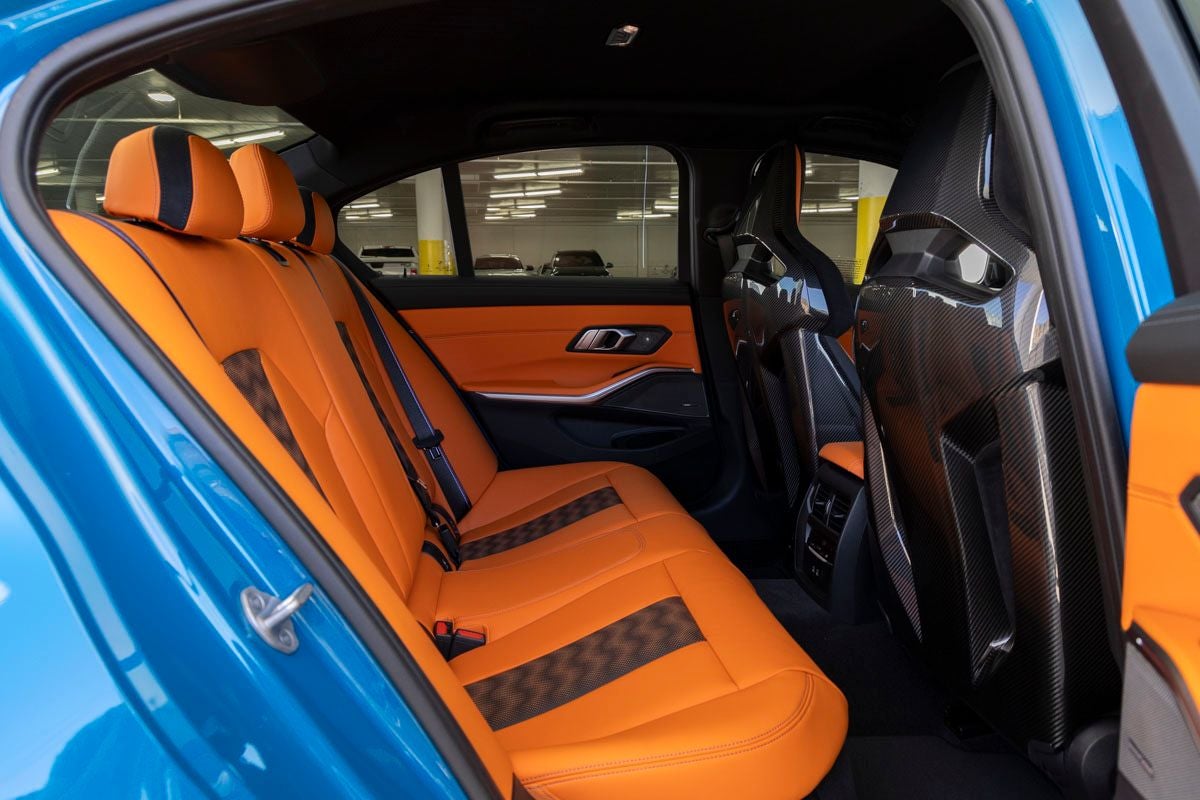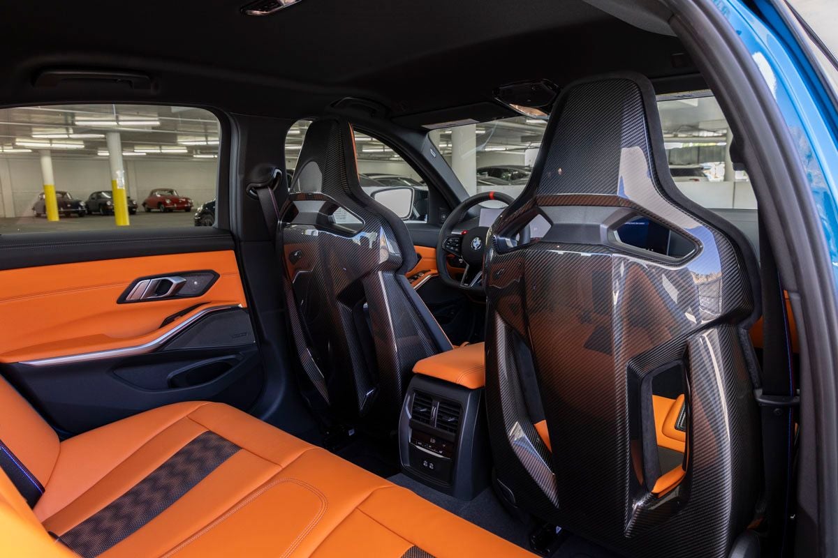 Step inside and the Kyalami Orange/Black interior creates a bold and exhilarating cockpit environment. M Carbon Bucket Seats provide race-inspired support, while carbon fiber trim and galvanic controls add a modern, high-performance aesthetic. The BMW Curved Display with Head-Up Display and advanced connectivity features ensure a seamless blend of technology and driver focus.