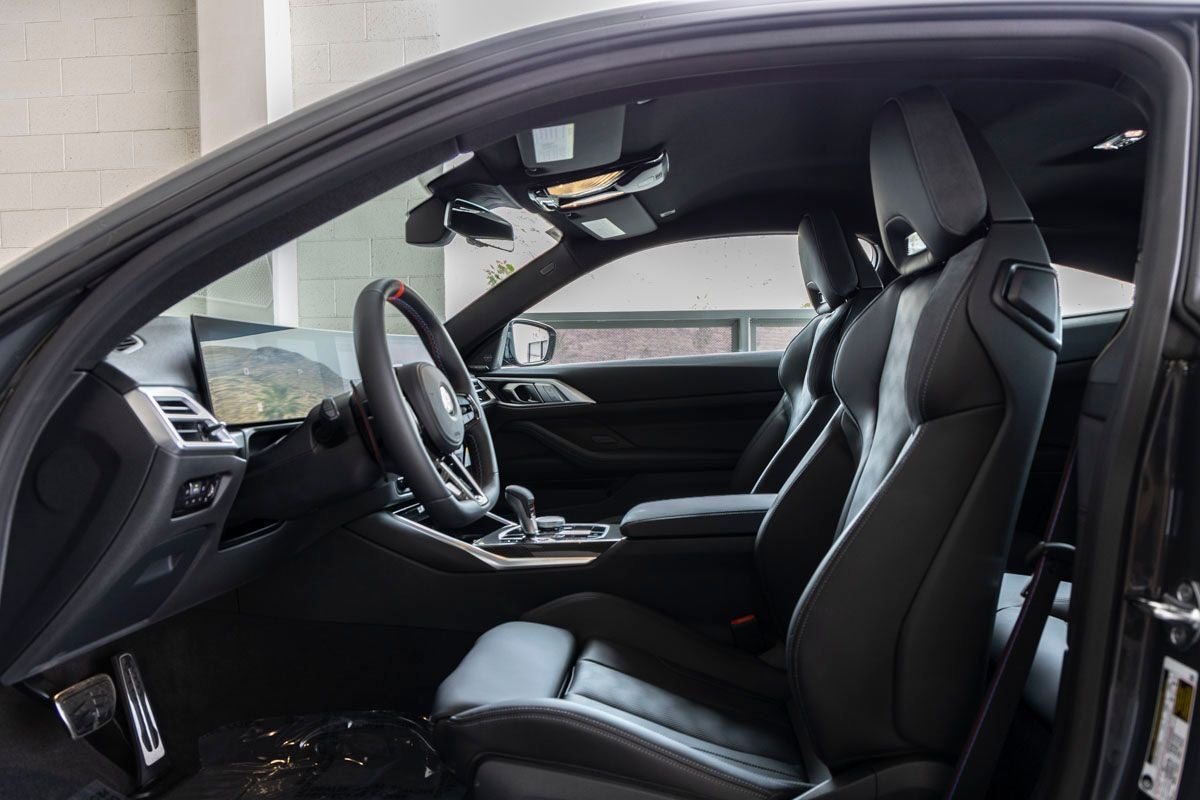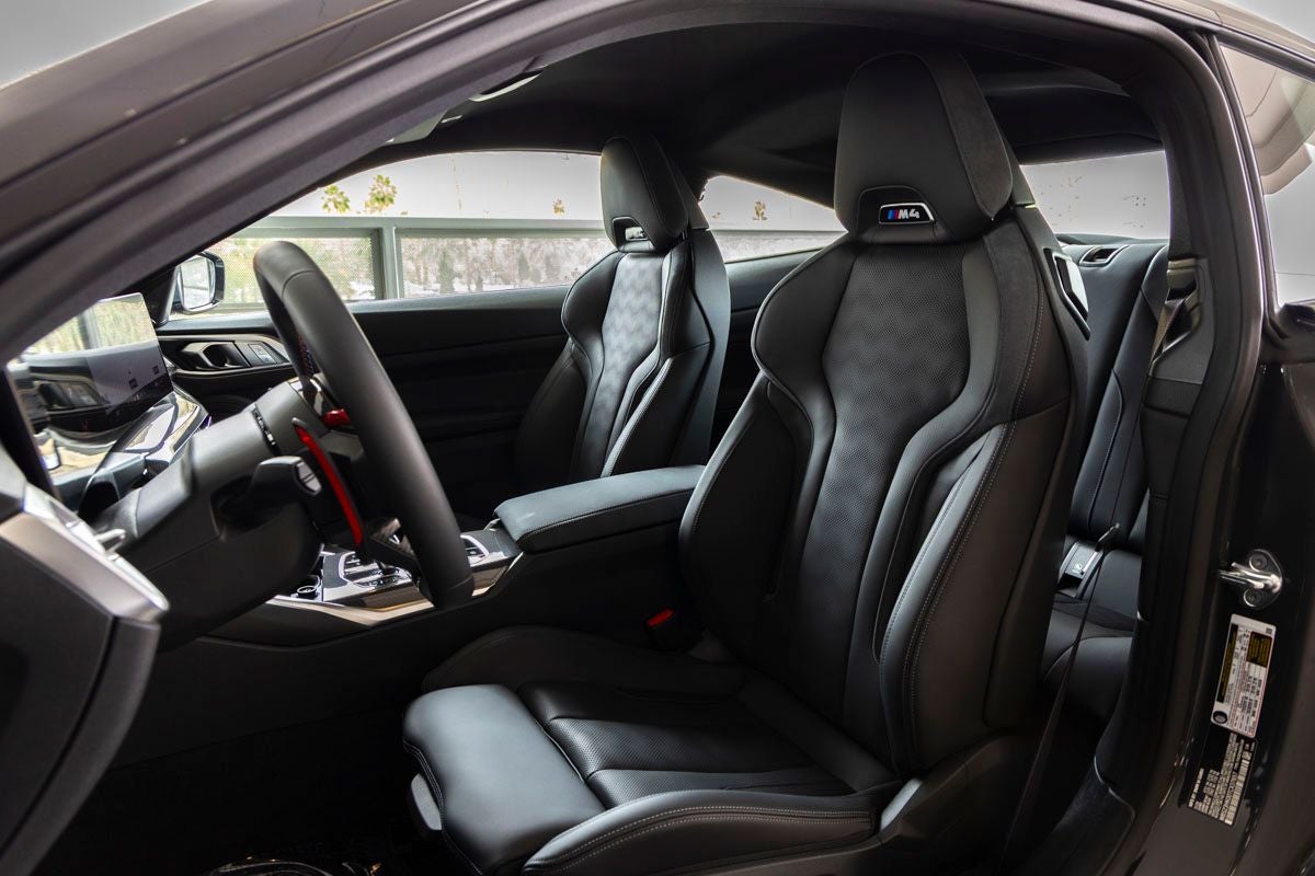 The M4 Competition commands attention with its striking Dravit Grey Metallic exterior, a finish that perfectly complements its sculpted, aerodynamic profile. Enhanced by M Shadowline Lights and bold body-color styling, this high-performance coupe exudes confidence and precision. Its athletic stance and signature design elements reflect BMWs motorsport pedigree.