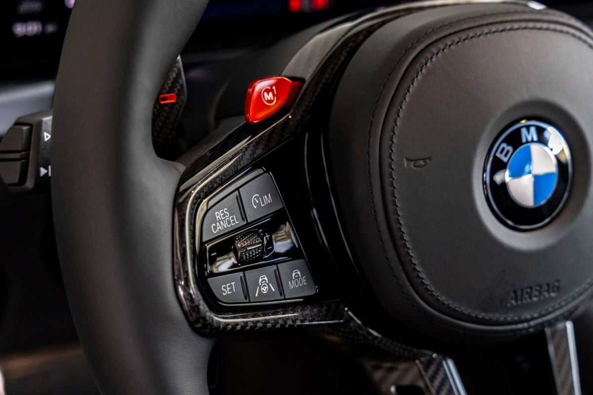 Step inside and the Black interior immerses you in a driver-focused cockpit crafted for both comfort and control. Premium materials such as Carbon Fiber Trim and Galvanic Controls elevate the cabins modern aesthetic. M Sport Seats, along with heated and ventilated front seating, provide exceptional support, while the Live Cockpit Pro with Navigation and Harman/Kardon Surround Sound System deliver cutting-edge technology and immersive connectivity.