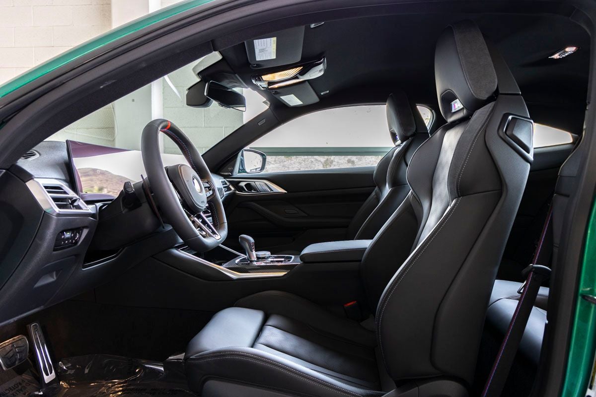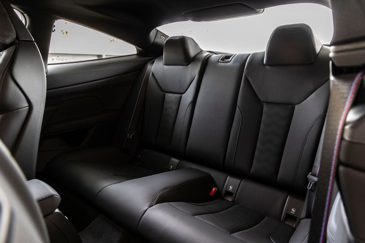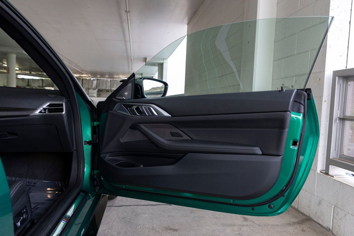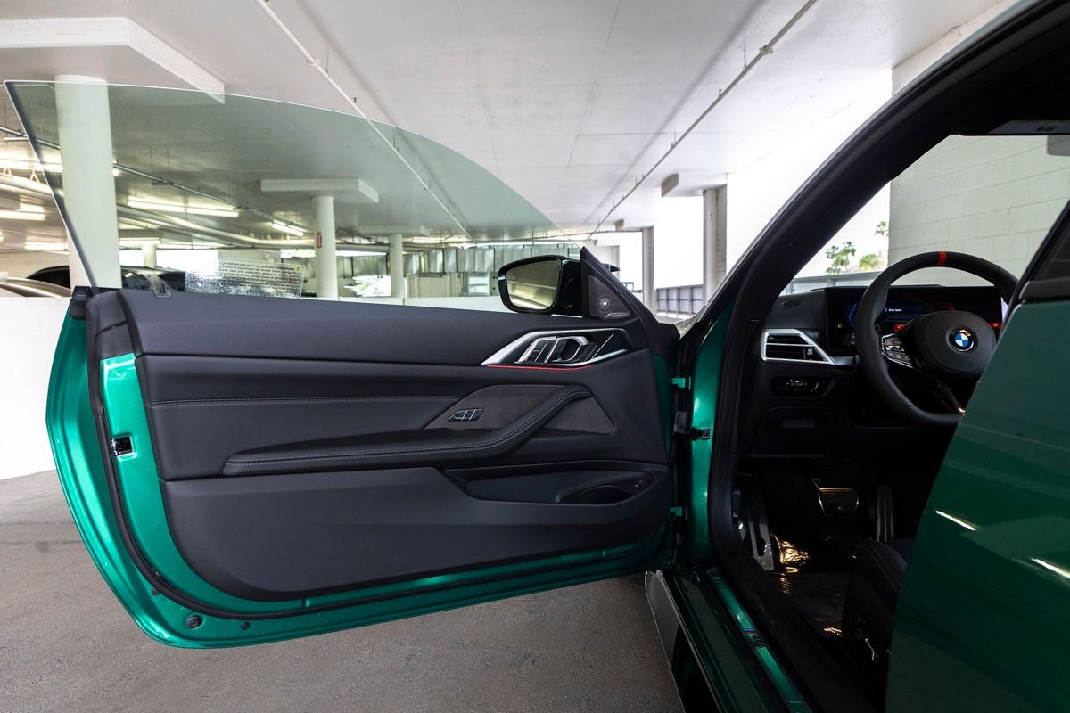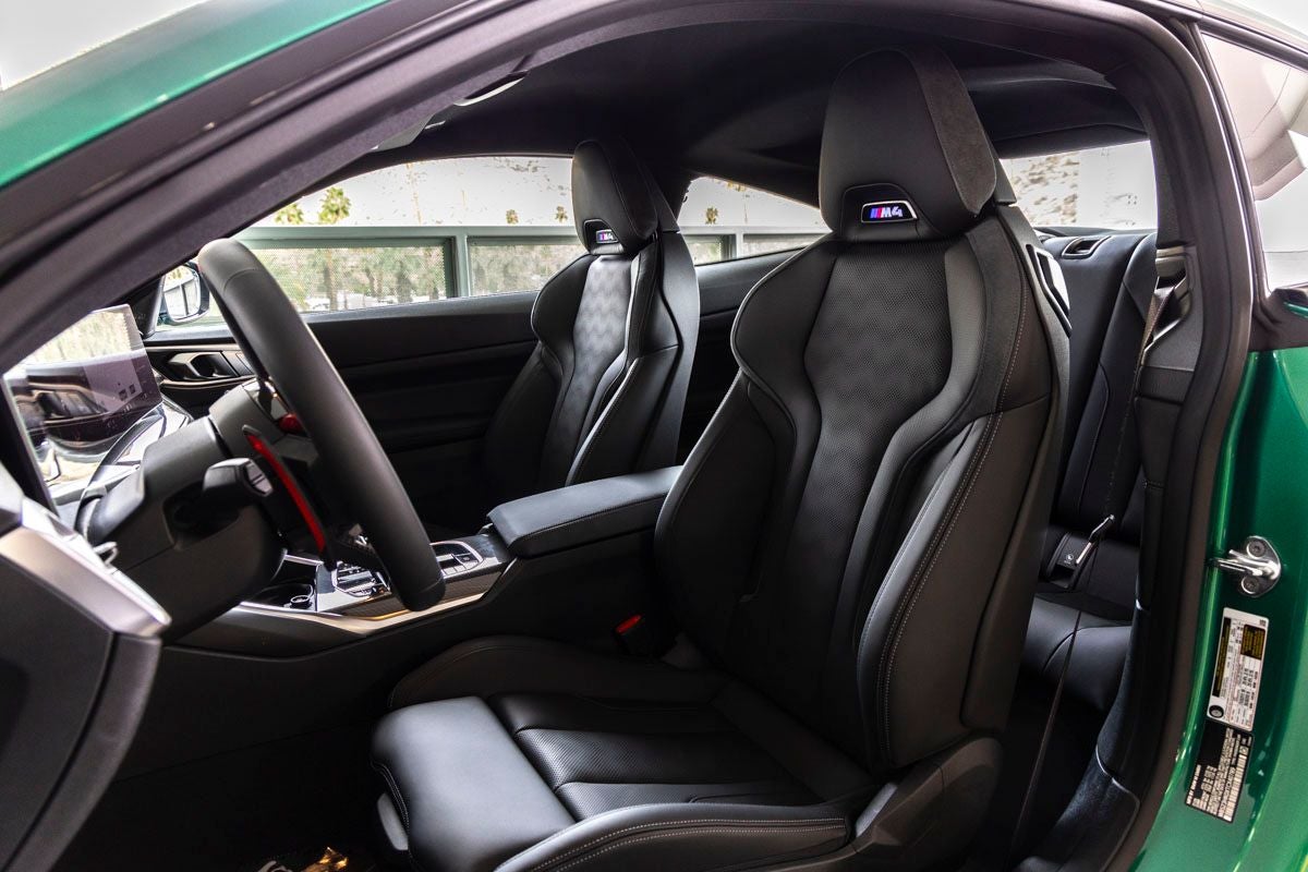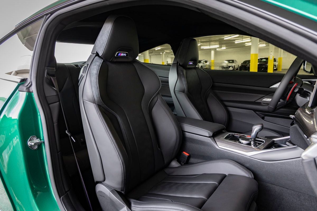 The M4 Competition stands as an icon of high-performance coupe design, its Isle of Man Green Metallic exterior delivering a bold and unmistakable presence. Aggressive lines, aerodynamic sculpting, and signature M design elements are complemented by M Shadowline Lights and a commanding stance that reflects its track-focused DNA and road-going refinement.