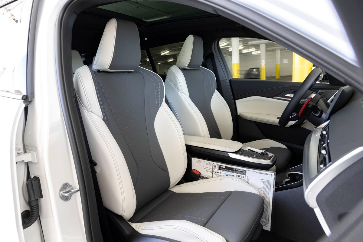 Inside, the Atlas Grey/Smoke White interior showcases Perforated Veganza Upholstery and Front Sport Bucket Seats designed to balance performance and comfort. Active Front Seats with Lumbar Support, Heated Front Seats, a Heated Steering Wheel, Dual-Zone Automatic Climate Control, and Memory Seating create a personalized driving experience. The Technology Package introduces Live Cockpit Pro with Navigation, a vivid Widescreen Display, Head-Up Display, Personal eSIM 5G, Wireless Device Charging, and Apple CarPlay & Android Auto Compatibility. A harman/kardon Premium Sound System with SiriusXM and 1-Year Trial Subscription delivers immersive audio clarity.