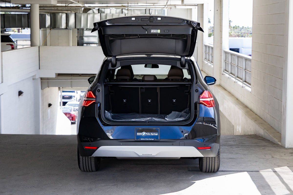 The sleek exterior is enhanced by the BMW Iconic Glow Kidney Grille, 19 Aero Midnight Grey Bicolor wheels, body-color accents, and a Panoramic Moonroof that fills the cabin with natural light. A Power Liftgate and Parking Assistant Plus with 3D Surround View make everyday usability effortless, while Auto High-Beam LED headlights and an Exterior Parking Camera add convenience and confidence.