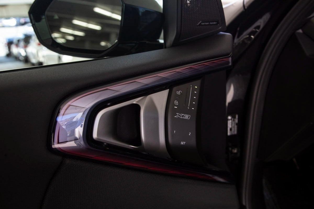 The refined interior features Veganza Perforated & Quilted Upholstery, Front Ventilated & Heated Seats, and a Heated Steering Wheel for yearround comfort. Driver memory seating with lumbar support, a Premium Sound System with Harman/Kardon Surround and 12 speakers, and genuine wood trim elevate every journey. The sportcentric M Steering Wheel and driverfocused layout bring a dynamic feel to the cockpit.