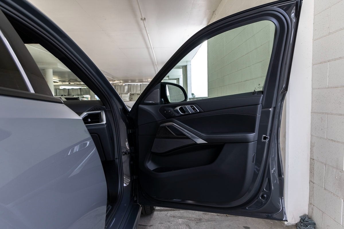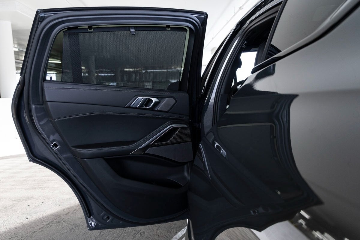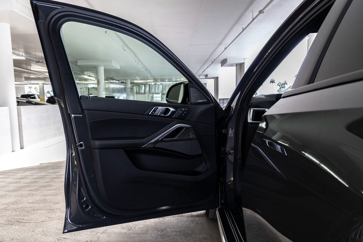 The bold silhouette of the X6 M60i is unmistakable, accentuated by the 20 x 9 M Star-Spoke Bicolor Wheels (Style 740M), M Shadowline Lights, and the aggressive styling of the Extended Shadowline Trim. Enhancing its visual presence are Soft-Close Automatic Doors, a Power Liftgate, and a Panoramic Sky Lounge LED Roof, fusing sportiness with high-end sophistication.