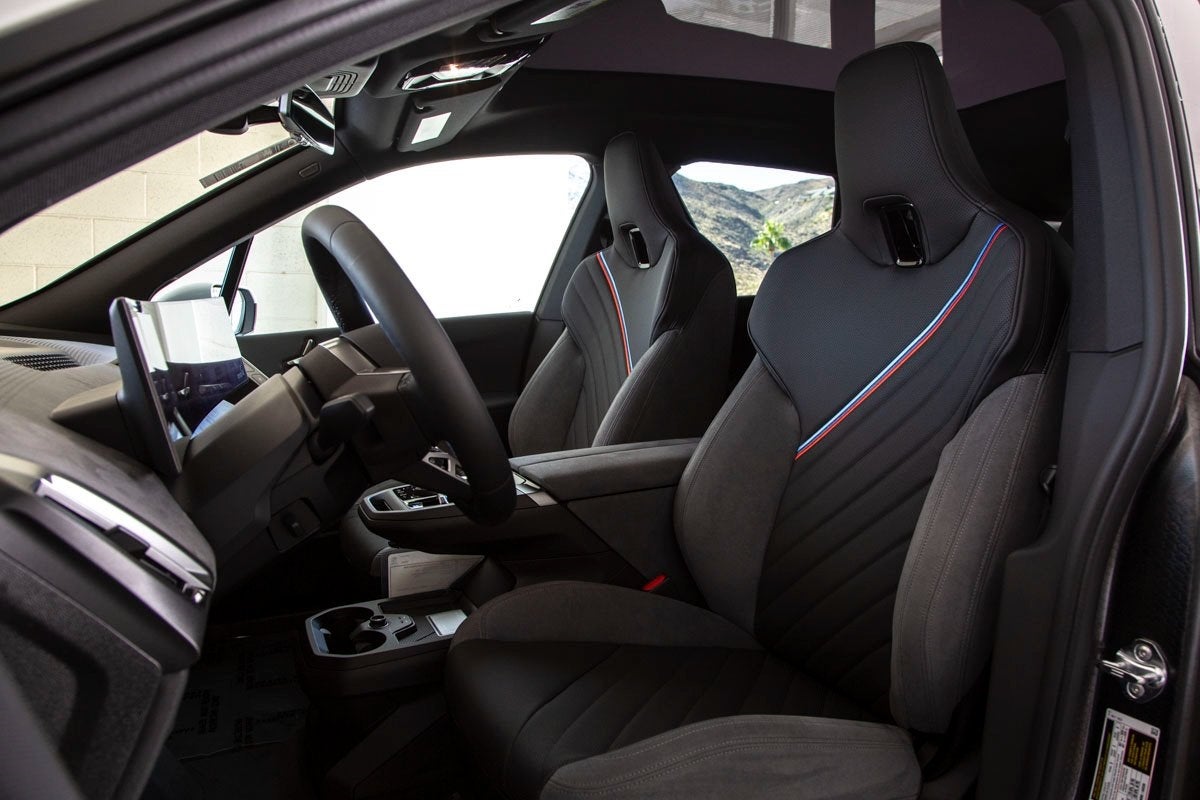 Step inside the Black/Atlas Grey interior, where M Multi-Functional Seats are finished in Perforated SensaTec Upholstery and complemented by M Dark Silver Interior Trim. The Premium Package enhances the experience with a Heated Steering Wheel, Heated Front Seats, and Wireless Device Charging. The cabin is wrapped in innovation, led by the BMW Curved Display with Live Cockpit Pro and immersive harman/kardon 18-speaker Surround Sound System.