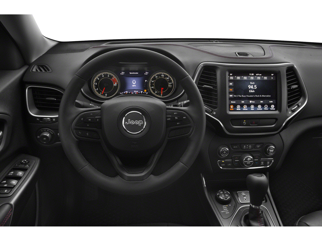 Step inside and the Black interior offers a durable yet refined cabin designed for both comfort and utility. Premium Leather-Trimmed Bucket Seats, heated and ventilated front seats, and a Heated Steering Wheel provide year-round comfort. The Uconnect 4C Navigation system with an 8.4-inch touchscreen, Apple CarPlay, Android Auto, and a Premium Alpine Sound System deliver modern connectivity and entertainment for every journey.