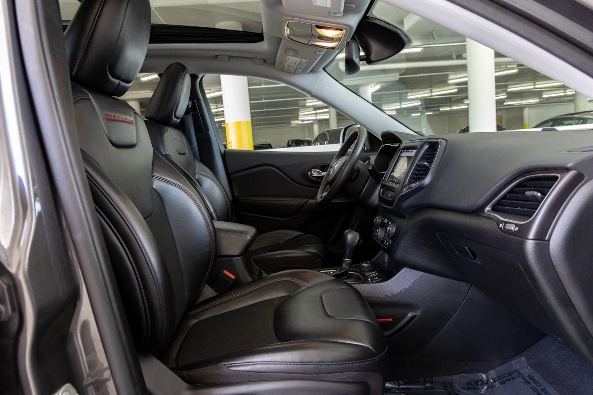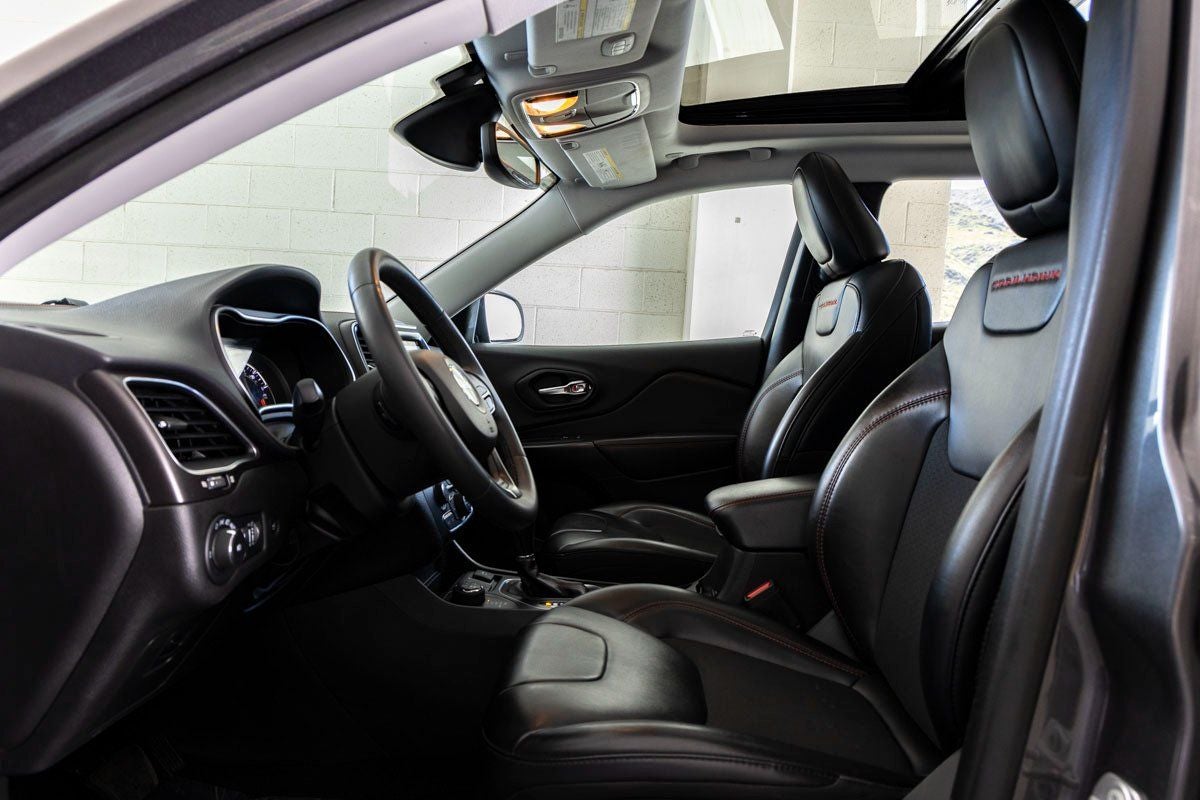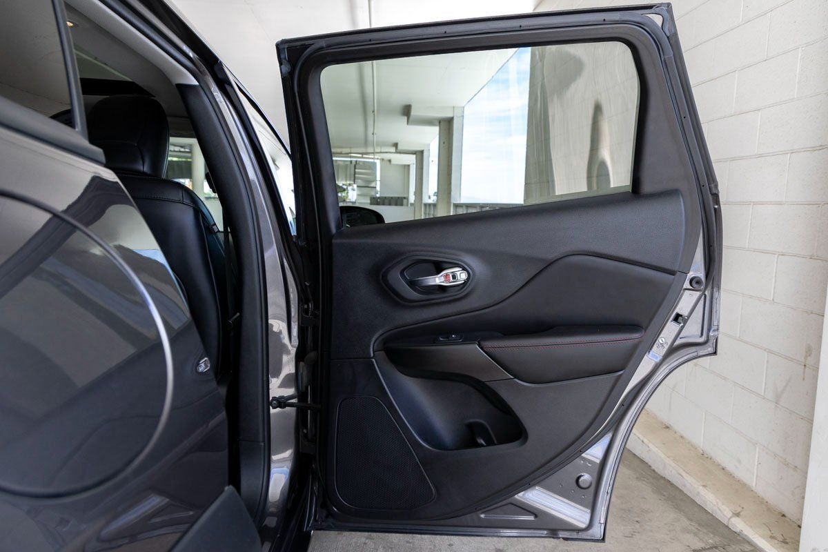Engine and Performance: Powering the Cherokee Trailhawk is a robust 3.2-liter V6 engine, delivering 271 horsepower and 239 lb-ft of torque. Paired with a 9-Speed 948TE Automatic transmission, it provides smooth power delivery both on and off the pavement. Four-Wheel Independent Suspension, Speed-Sensing Steering, Traction Control, Electronic Stability Control, ABS Brakes, and 4-Wheel Disc Brakes ensure balanced handling and confident stopping power. Safety is further supported by ParkView Rear Back-Up Camera, multiple airbags including rear side-impact protection, and advanced stability systems.