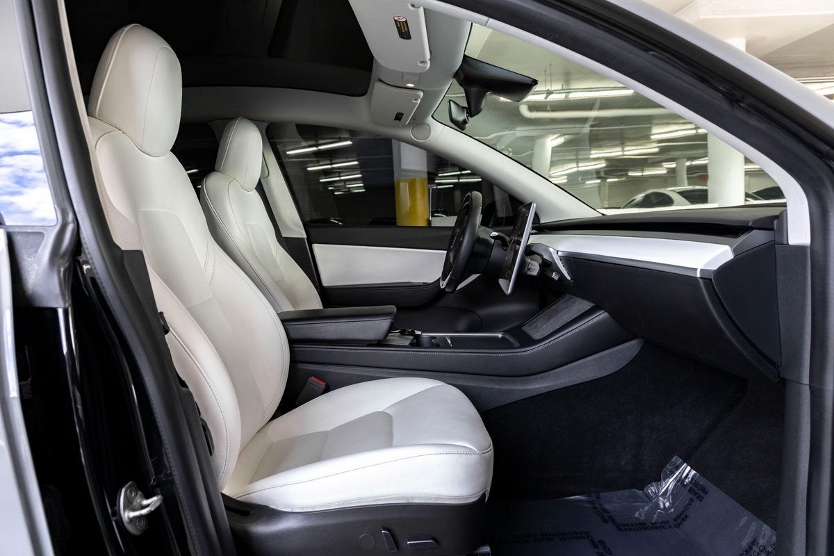 This Tesla Model Y Performance seats five with premium seat trim, heated front and rear seats, a front center armrest, and a split folding rear seat for flexible cargo and passenger space. Alloy wheels with 21 Uberturbine wheels enhance its athletic stance and performance heritage. With a 9.0 axle ratio optimized for electric drive and Teslas renowned instantaneous torque delivery, this Model Y offers both driving excitement and everyday practicality.