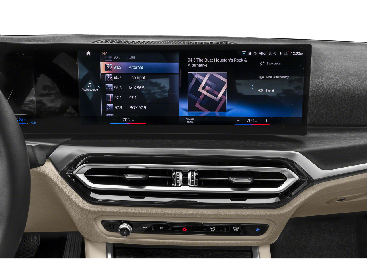 Inside, the Canberra Beige interior creates a bright and inviting cabin atmosphere. Perforated Sensatec Upholstery, Genuine Wood trim on the dashboard and console, a Leather Steering Wheel, and Leather Shift Knob add upscale detail throughout. Heated Front Seats, a Heated Steering Wheel, Dual-Zone Automatic Climate Control with Rear Air Conditioning, and Comfort Access Keyless Entry enhance daily comfort and convenience. Memory seating with Driver Lumbar Support ensures a personalized fit, while the BMW Curved Display with Head-Up Display (HUD), Widescreen Display, Navigation System, Connected Package Pro, Enhanced USB & Bluetooth® with Smartphone Integration, Apple CarPlay & Android Auto Compatibility, SiriusXM Satellite Radio, and Hi-Fi Sound System keep you seamlessly connected.