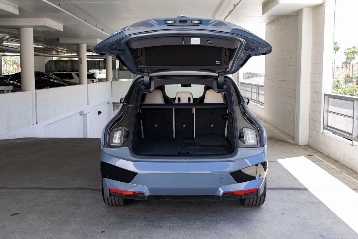 The BMW iX xDrive50 stands as a visionary SUV, its Storm Bay Metallic exterior offering a unique and modern aesthetic that highlights its sculpted, aerodynamic form. Enhanced by the Sport Package and distinctive design elements, it delivers a commanding yet refined presence. The clean surfaces and futuristic styling cues reflect BMWs forward-thinking approach to electric mobility.