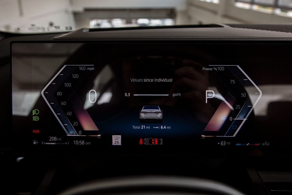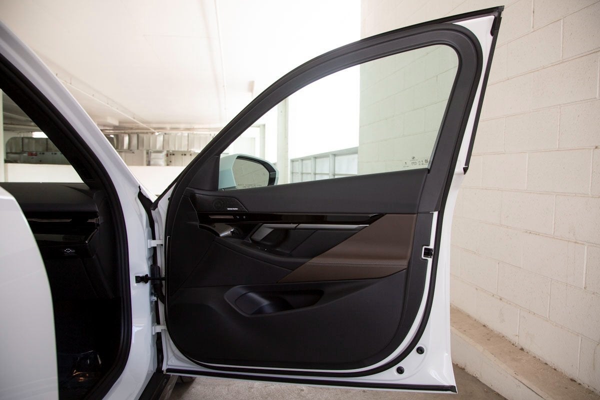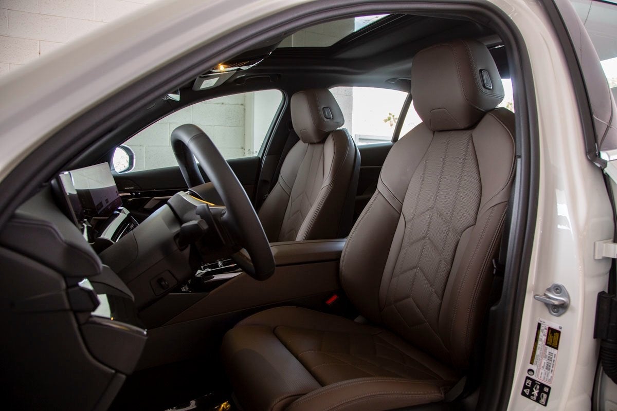 Step inside, and the Espresso Brown cabin greets you with a luxurious blend of Perforated & Quilted Veganza Upholstery, genuine wood dashboard and door panel inserts, and state-of-the-art technology. The BMW Curved Display with HUD and Navigation System redefine the driver interface, while harman/kardon Logic 7 Digital Surround with 12 speakers offers an unparalleled audio experience. Stay seamlessly connected with Apple CarPlay & Android Auto Compatibility, Connected Package Pro, and BMW TeleServices.